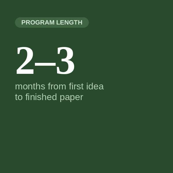 Most students never get the chance to do real research before college. This program changes that. Work with Dr. Joy Li, a Duke PhD, to develop your own research question and produce a finished paper or proposal over 2 to 3 months.